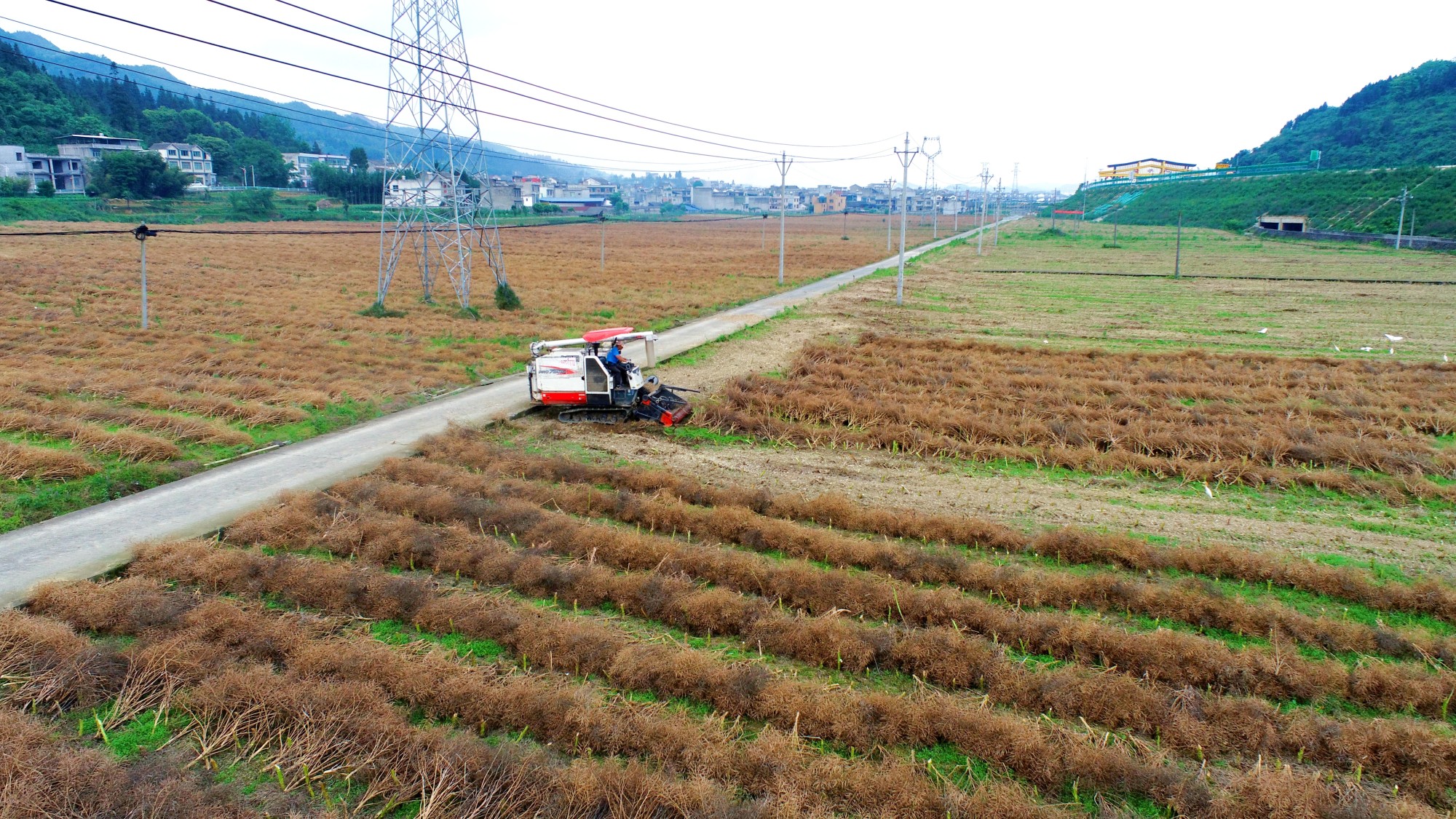 近来,在金沙县平坝镇金塔社区金沙恒丰农业有限公司栽培基地里,乡民抢抓晴好气候收割油菜,大型收割机在油菜田中来回络绎,助力油菜收割。